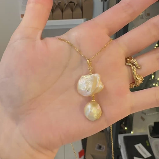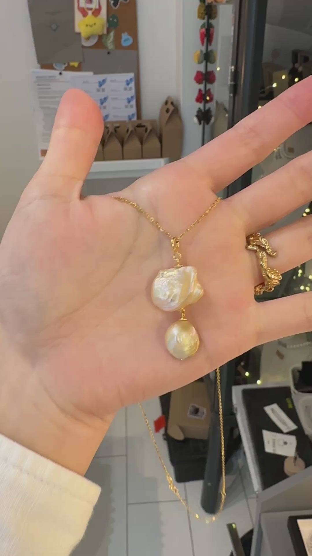 Two baroque petal pearl, with 14k gold plated silver! Handmade