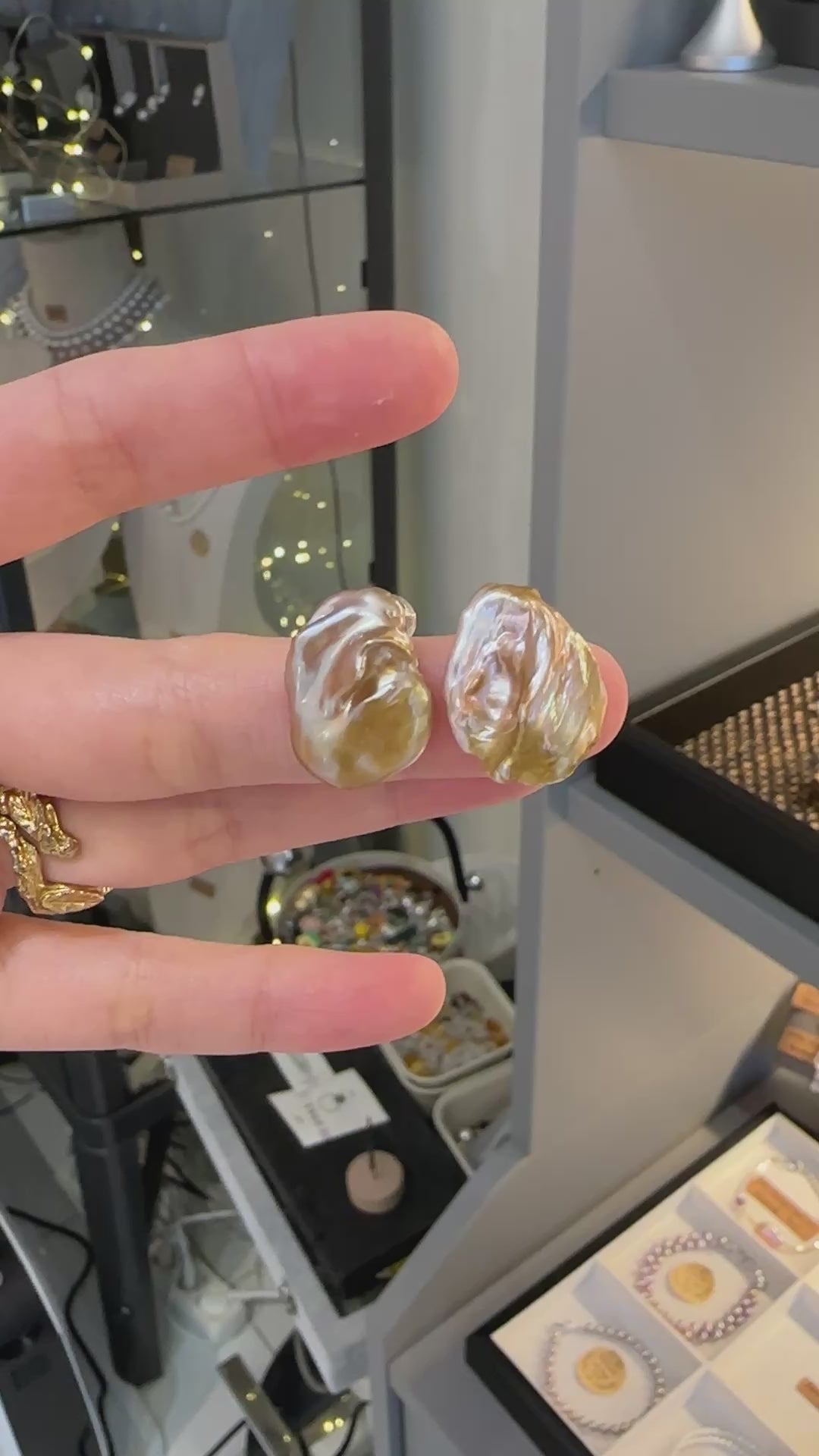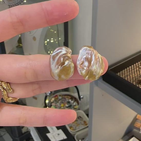 Rare golden petal pearl, extremely luxurious luster, warm tone, with pure silver post, handmade
