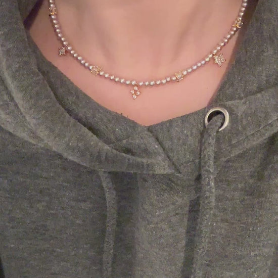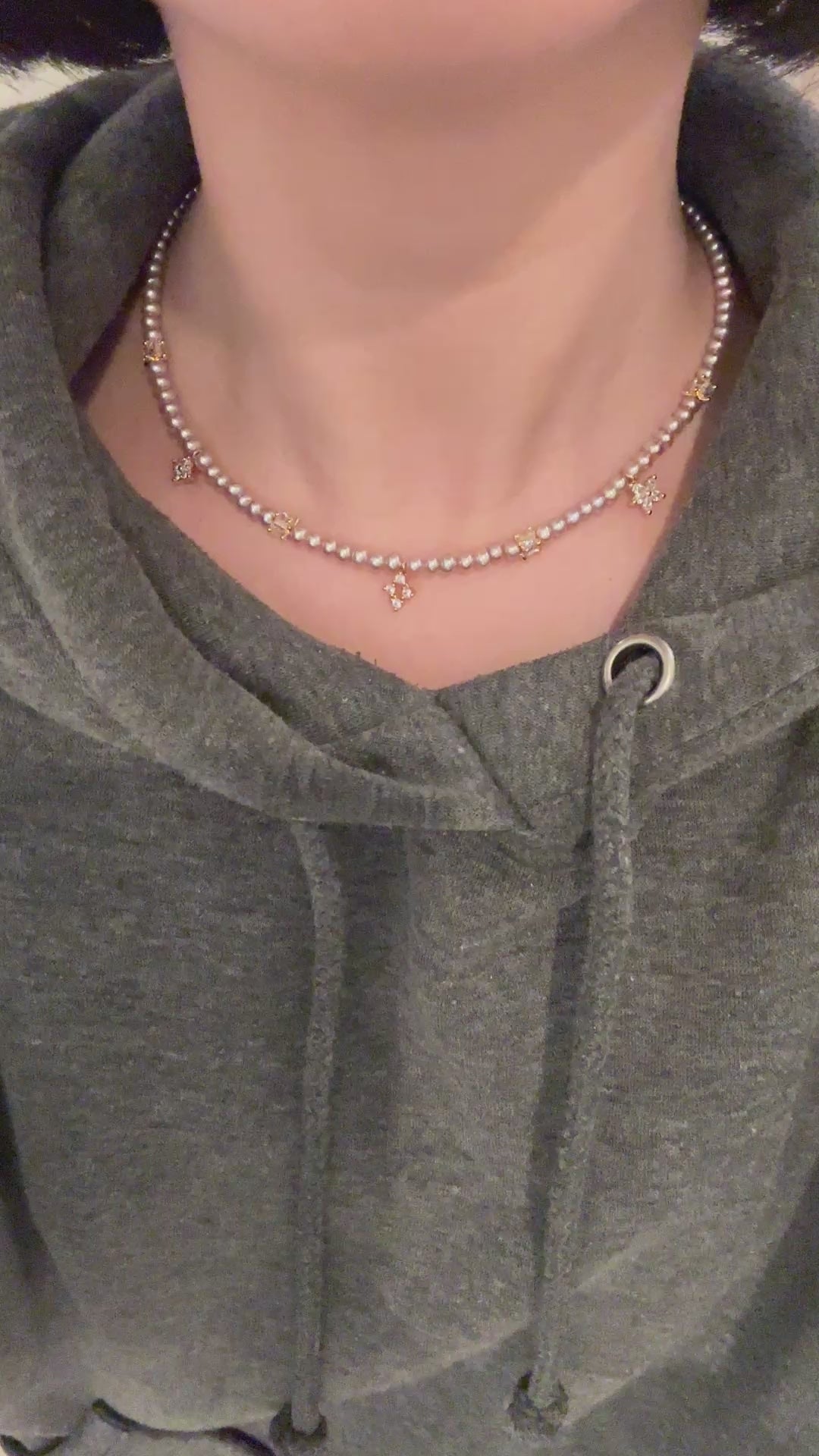 Premium quality Aurora Pearl, natural purple color, with different charm, stylish choker