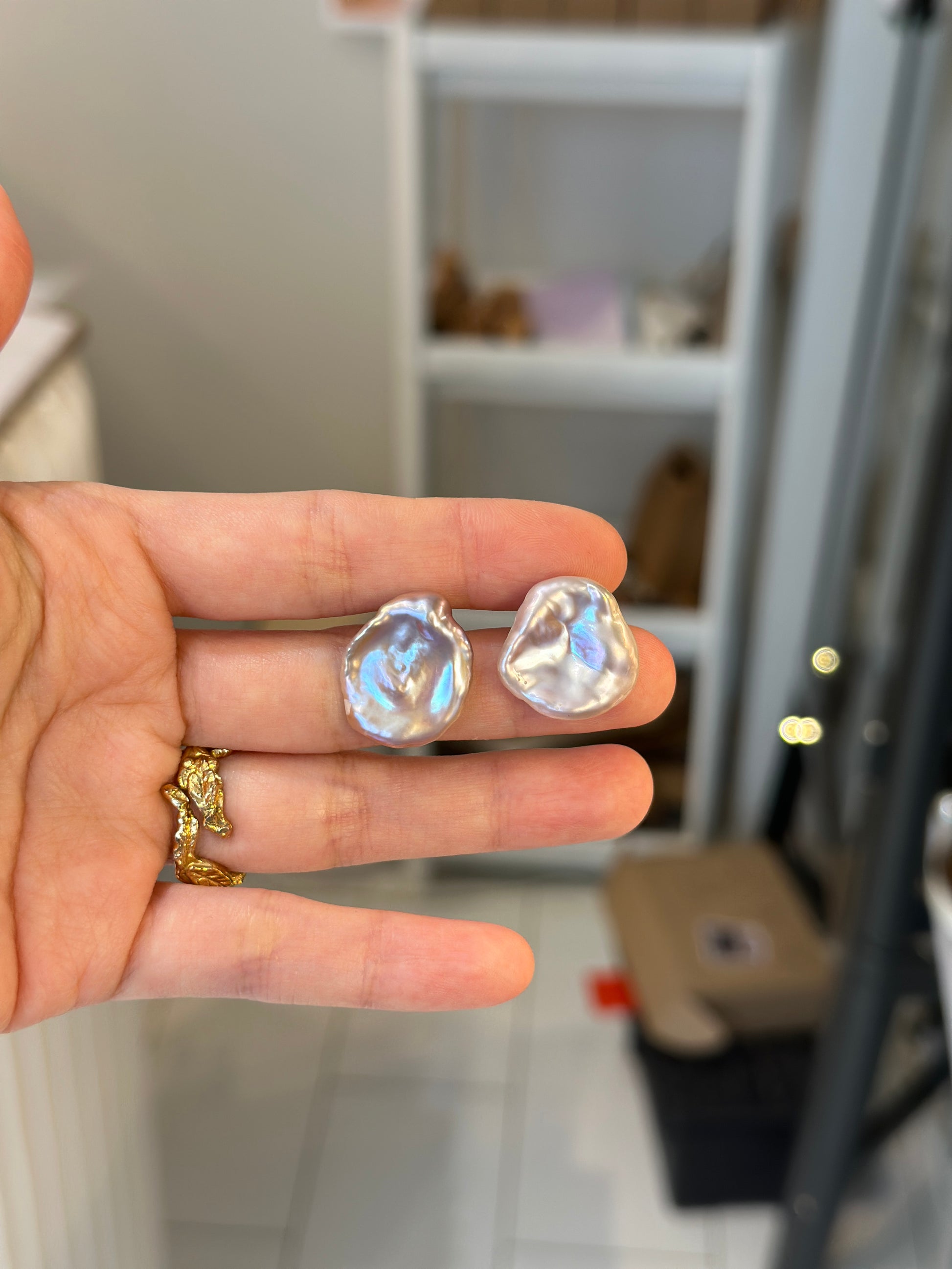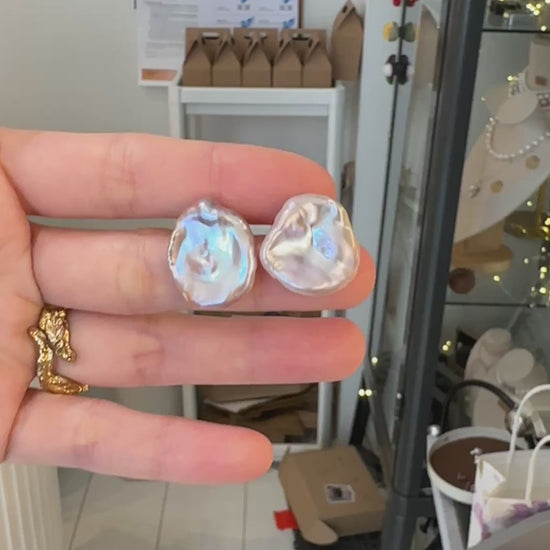 Purple petal pearl, flowers alike, gorgeous luster, pure silver post, handmade