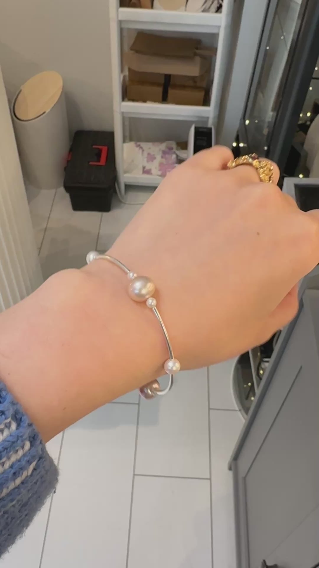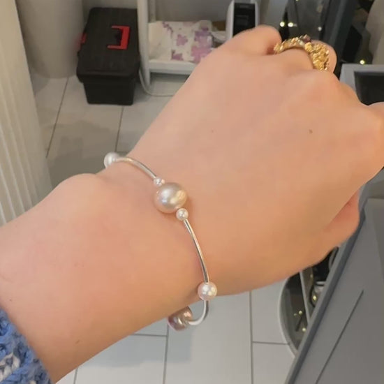 Pure silver tube, with menta rose pearl, white Aurora pearl, handmade